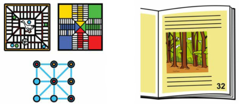 Spela spel och titta i bok.