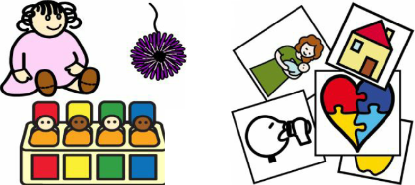 Om du ska gå till logoped med ditt barn kan ni tillsammans titta på de här bilderna för att se vad som kan hända vid besöket.
