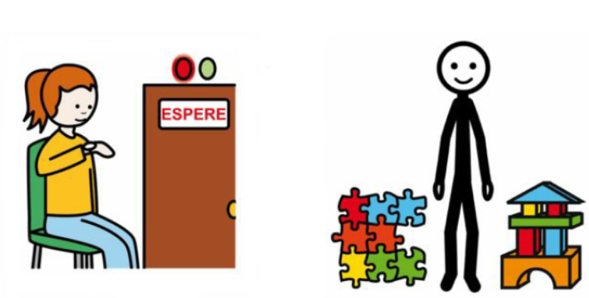 Sitt ner och vänta eller lek i väntrummet. Logopeden hämtar er.